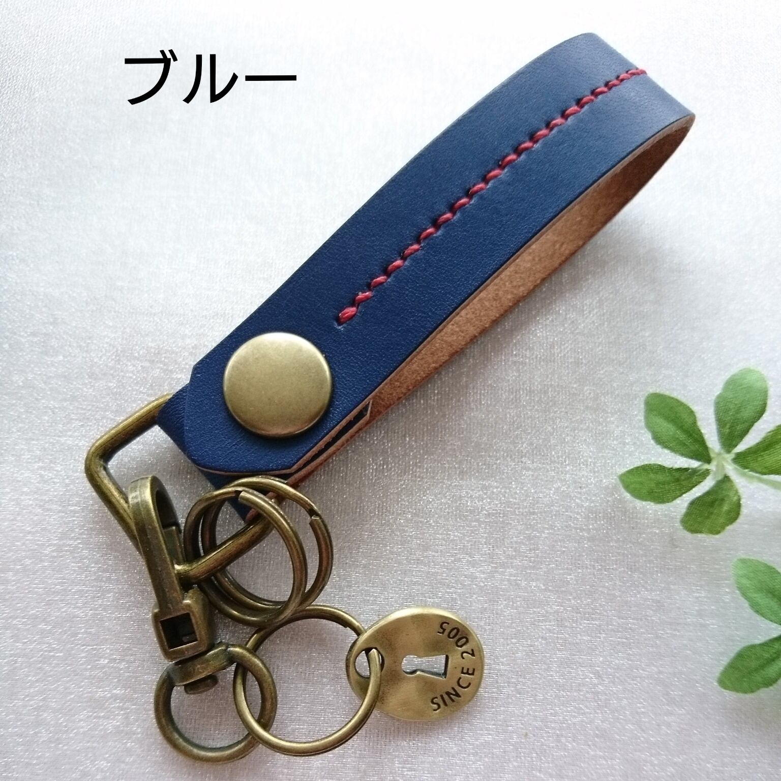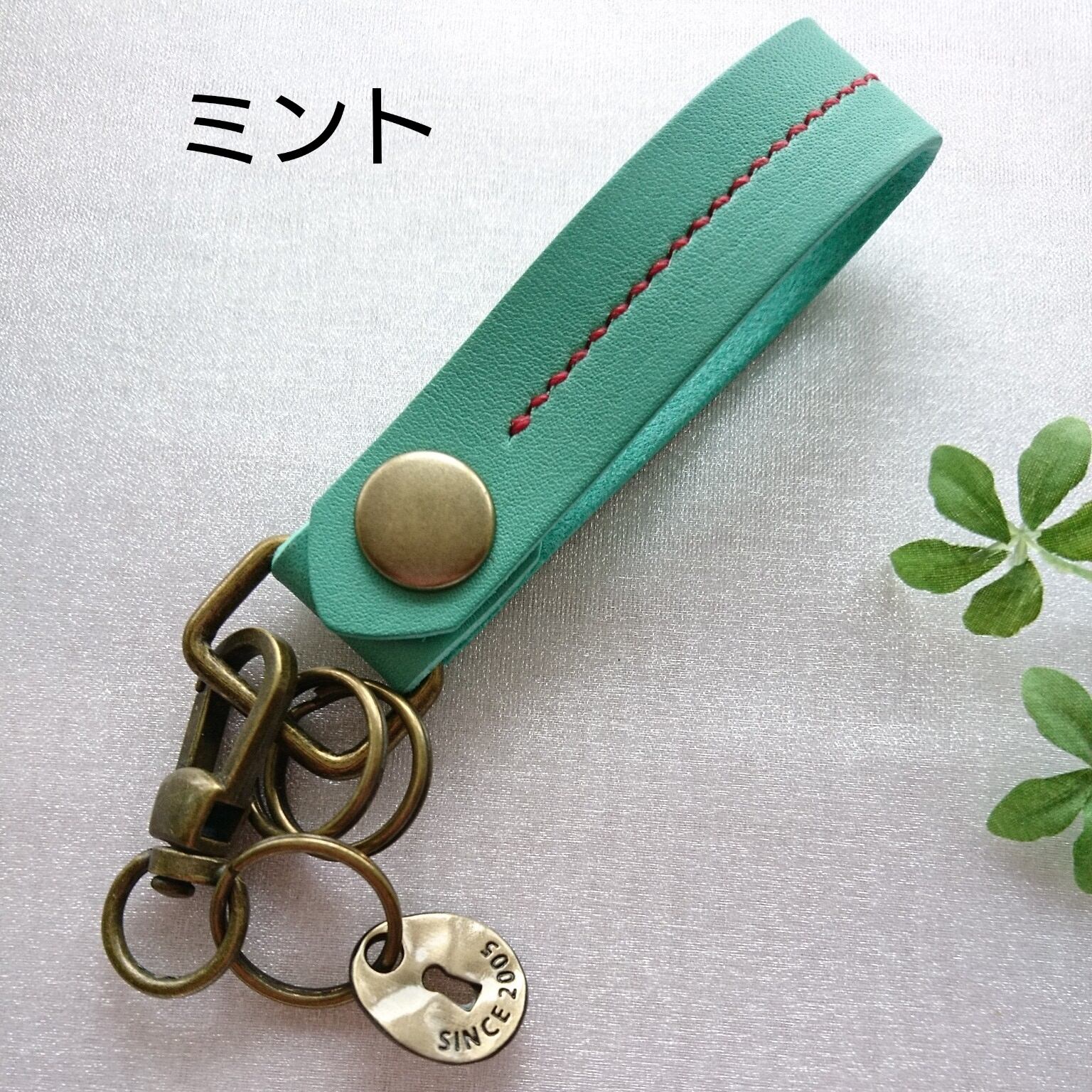 ご縁を結ぶ赤い糸2・手縫いステッチナチュホワキーホルダー(名入れ可)