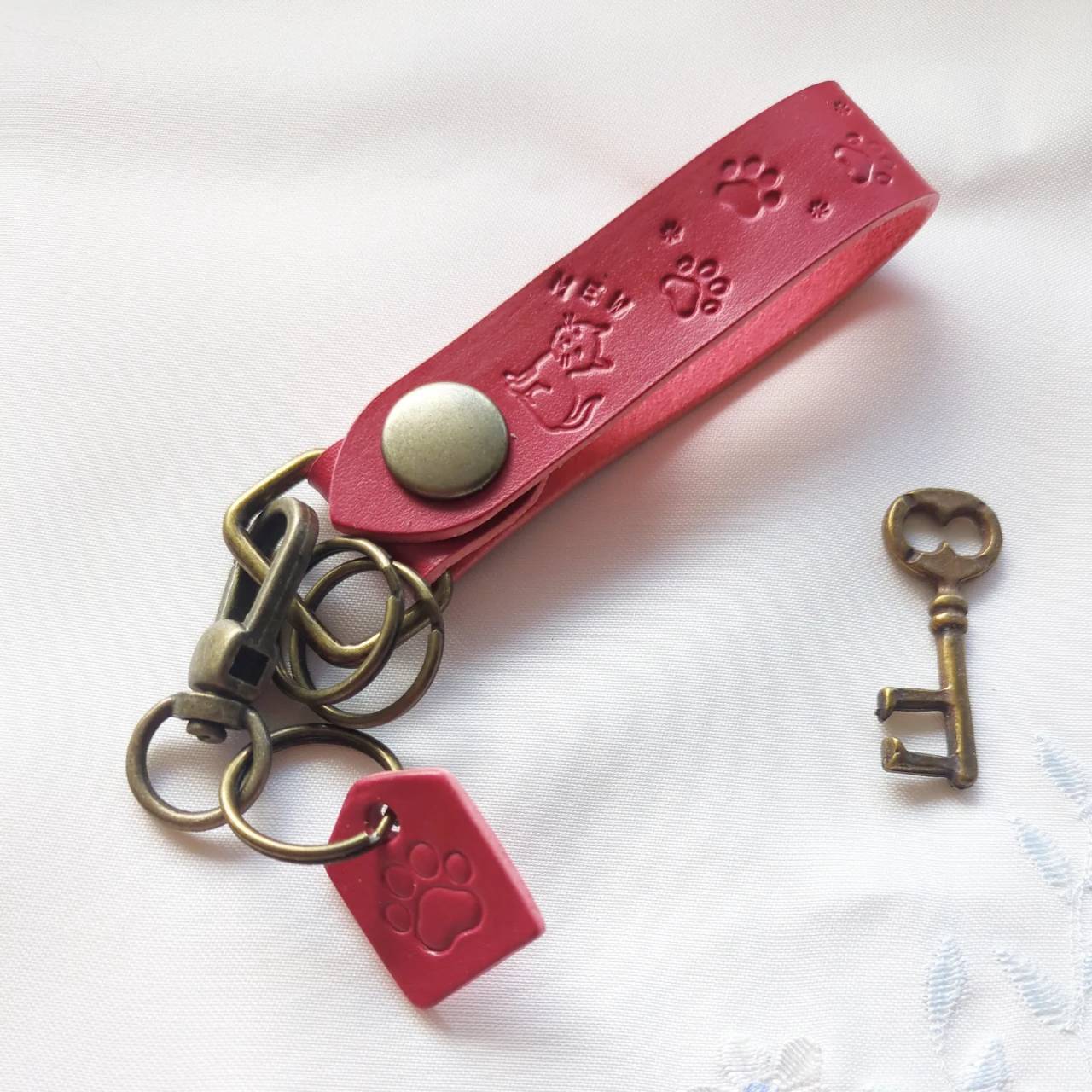 猫好きのための本革MEWキーホルダー・レッド